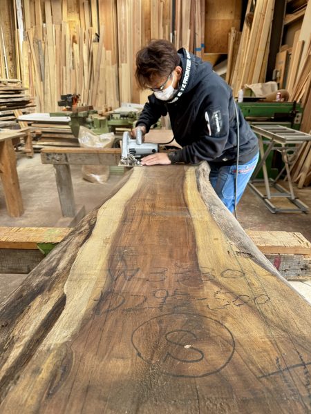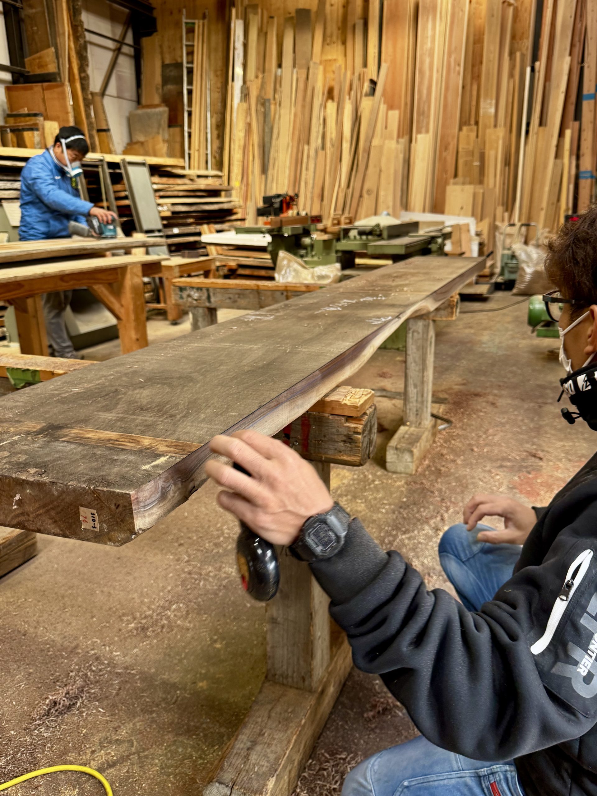 ショールーム横の加工場では大工職人さんが木材加工中!