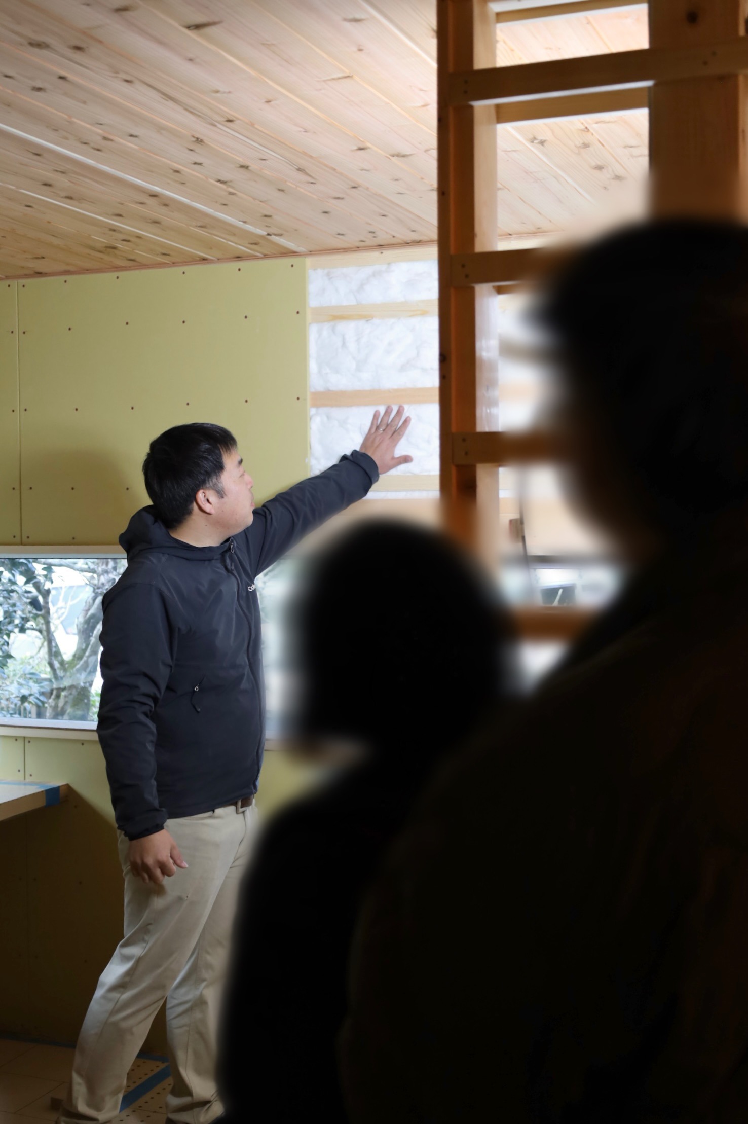 壁がボードの状態で断熱材を見られ、構造をご確認いただける貴重な見学会。