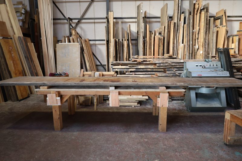 この倉庫の在庫の中で一番長い一枚板らしく