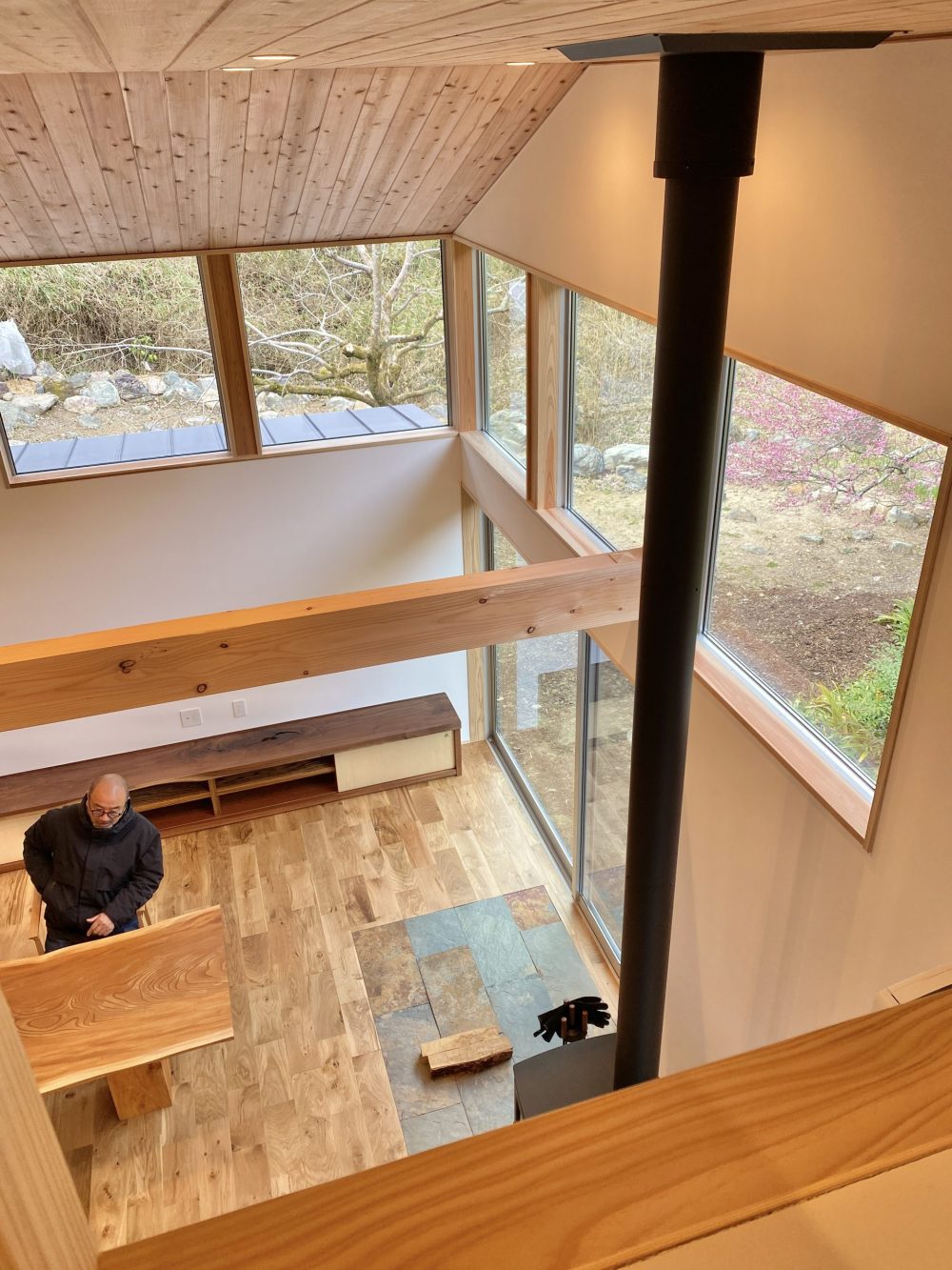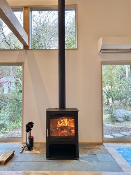 3月【完成見学会】の現場:大きな薪ストーブが冬の寒さを解決!